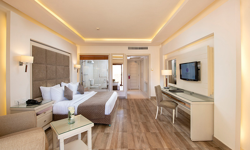 The resort is conveniently located approximately 7 km from Sharm El Sheikh International Airport, with an estimated transfer time of around 10–15 minutes.
